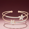 A stylish rose-toned wrap bangle crafted with a sleek twisting silhouette that embraces your wrist with elegance. Its modern wrap-around design offers a luxurious balance of simplicity and sophistication, making it a perfect accessory for daily wear and special occasions.